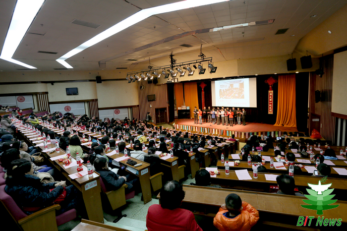 1月21日下午,学校中心教学楼一层报告厅成了欢歌笑语的海洋,2013年机关迎春联欢会在这里举行。党委书记郭大成,副校长赵显利、赵平与来自机关各部处300余位教职工欢聚一堂,共同感受一年来的丰收喜悦,并用精彩的表演让冬日雪后的校园洋溢着欢乐与祥和。