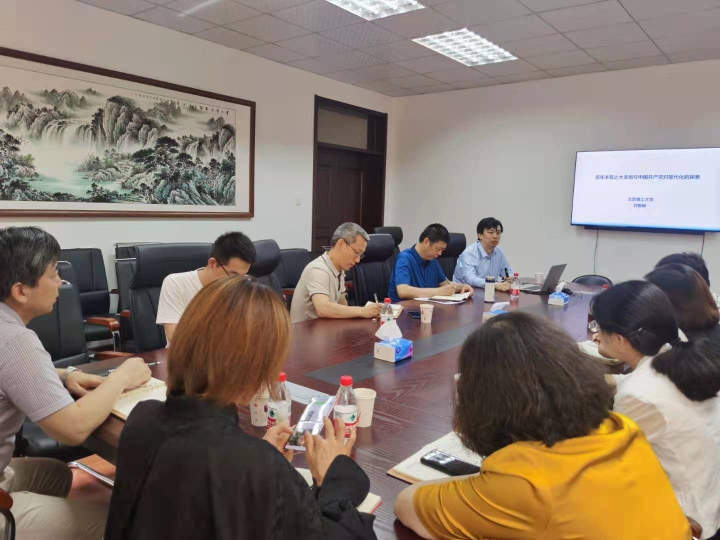 刘新刚教授结合习近平总书记关于百年未有之大变局的重要讲话精神,详细阐释了“百年未有之大变局”的时代背景和理论内涵;聚焦“高质量党建引领高质量发展”、“现代化经济体系”等方面深刻论述了中国共产党对现代化的探索成就;围绕“理论+实践”深度融合等方面系统阐述了未来的发展方向和创新路径。随后,与会人员展开热烈交流讨论。